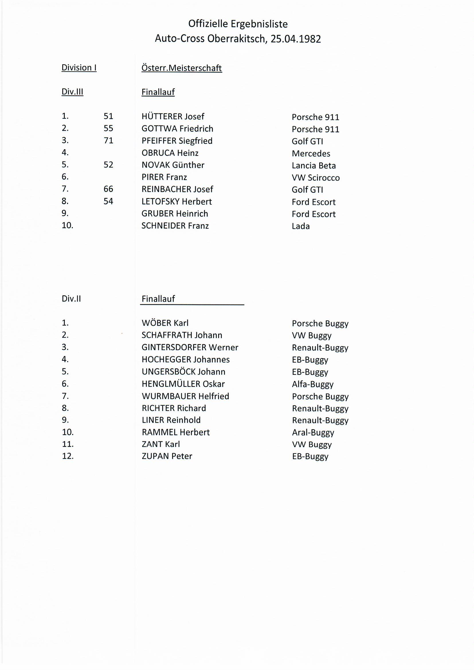 24. u. 25. April 1982, Jauschowetz-Ring Oberrakitsch